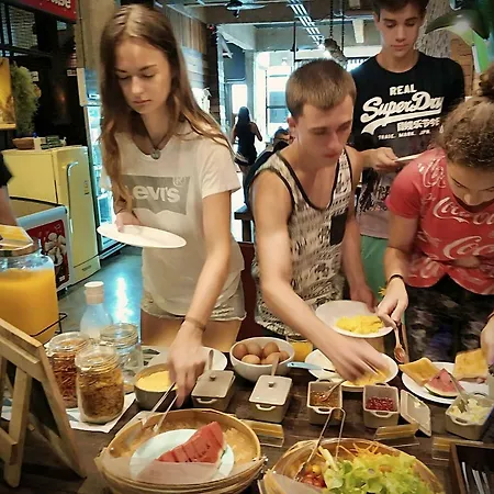 Das einfache Frühstück wird in der Lobby serviert. Italienische Speisen werden im Pizza-Restaurant angeboten. Natürlich ist auch eine Gemeinschaftsküche im Hostel verfügbar.